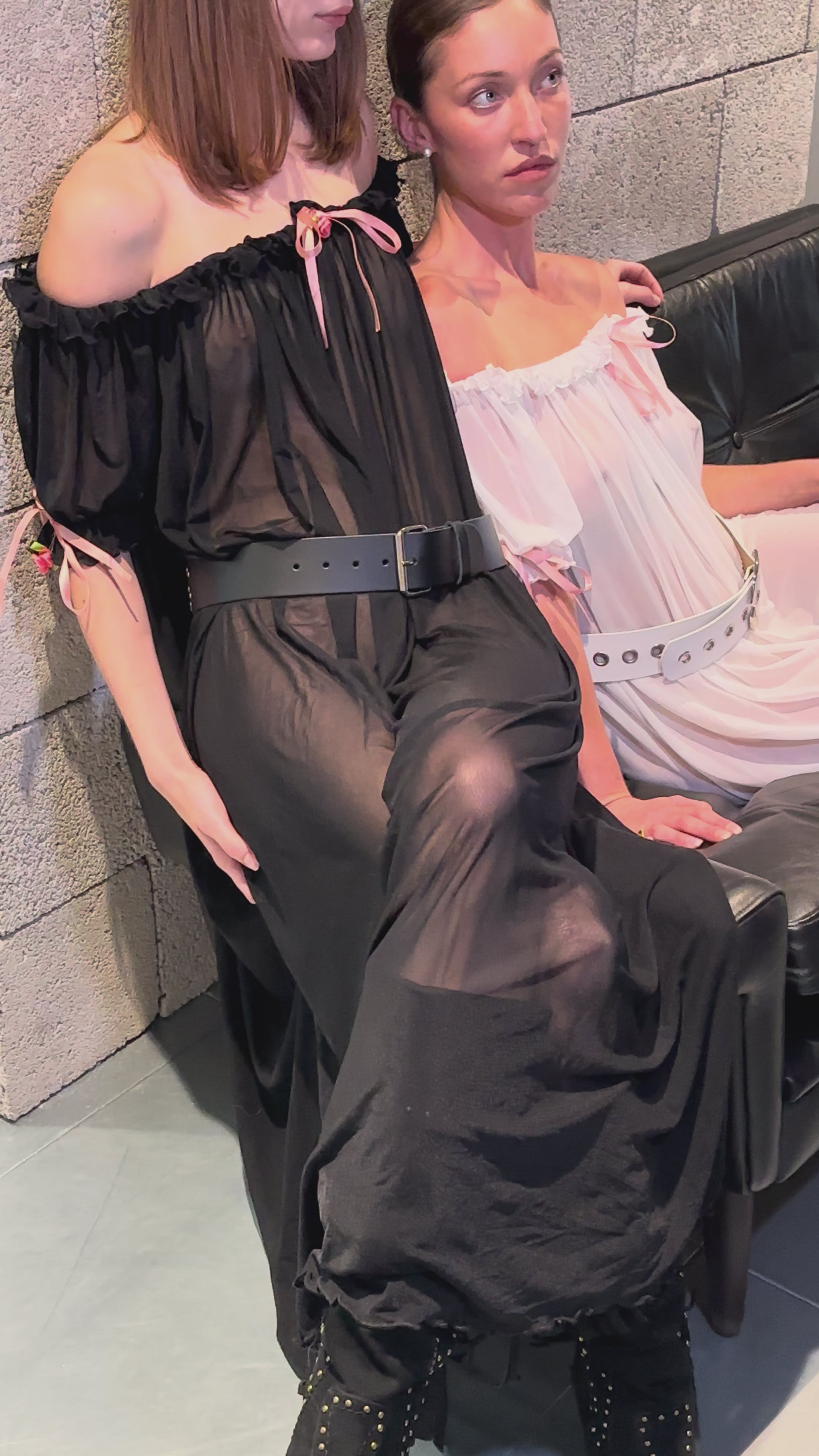 Mesh Milk-Maid Maxi Dress with Rose Trim