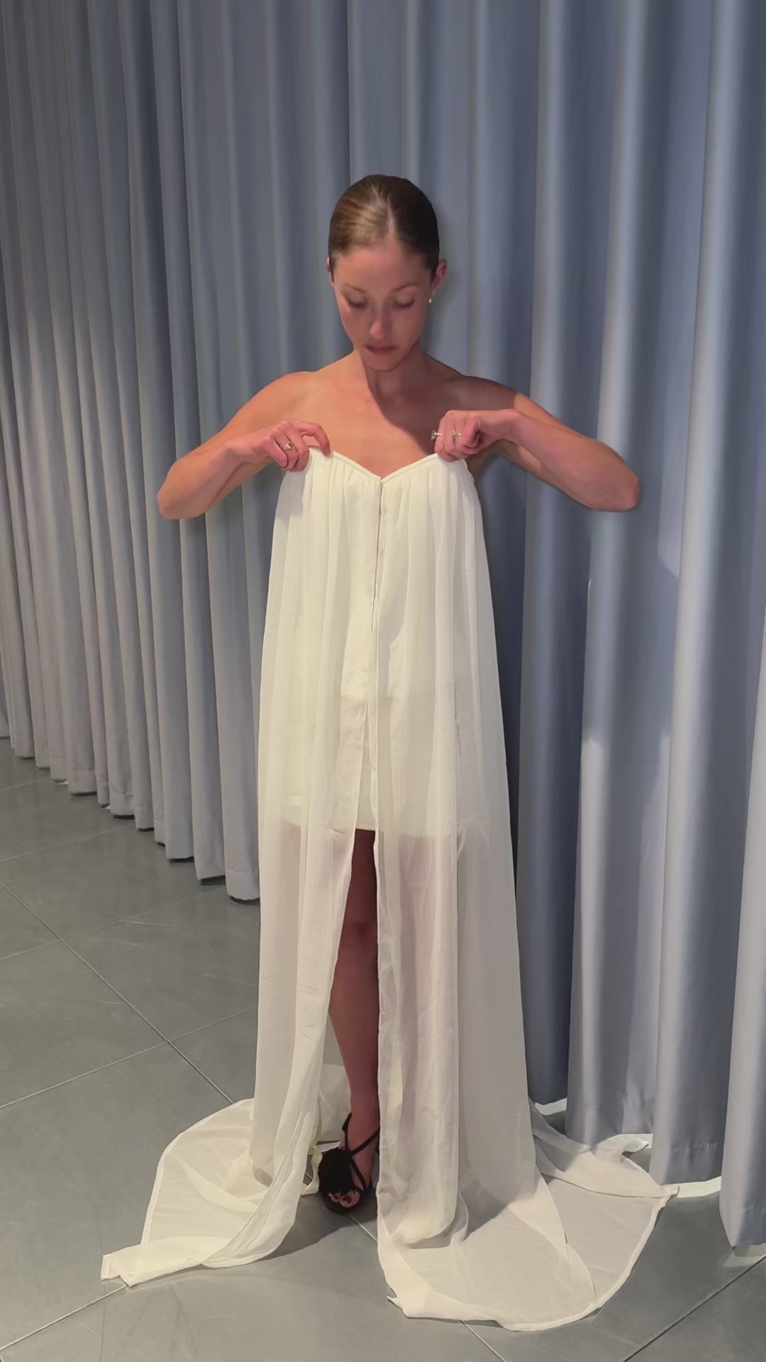 Corset Chiffon Waterfall Draped Top, can be worn in multiple ways.