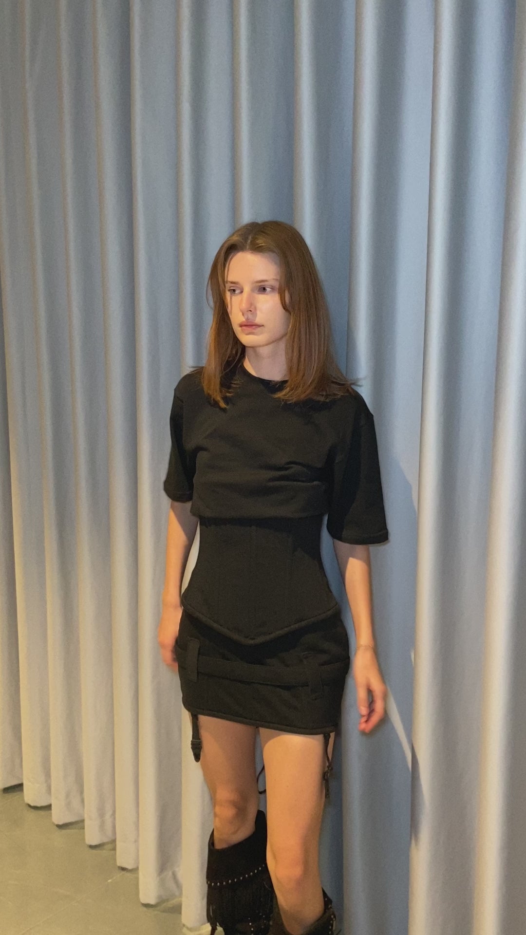 Cotton Boned Corset Tshirt in Black