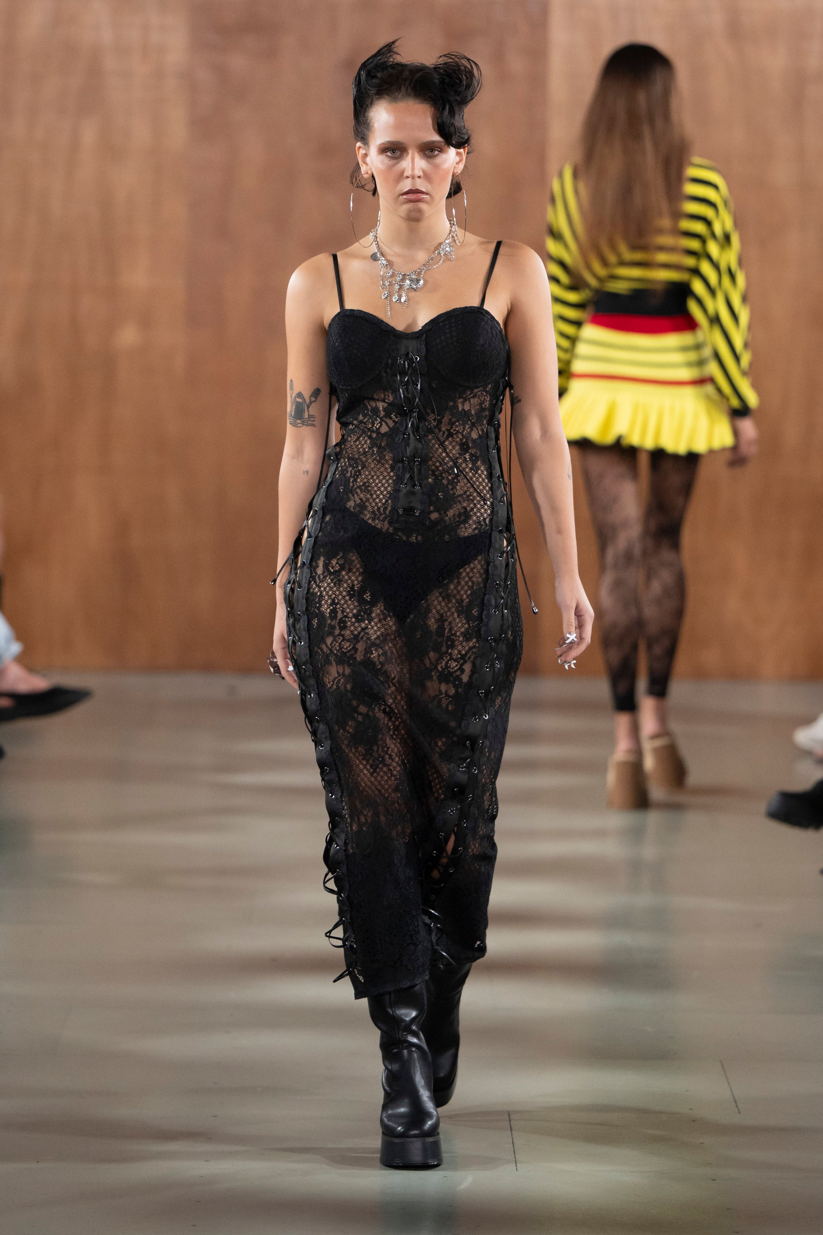 LACE CORD-UP EYELET DRESS WITH ADJUSTABLE BRA STRAPS AND WIRE CUPS
