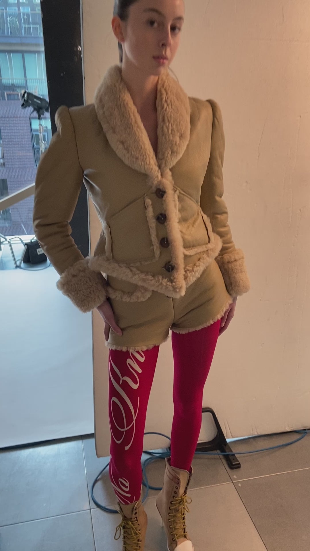 Shearling leather corset jacket with Front pockets and Puff sleeves