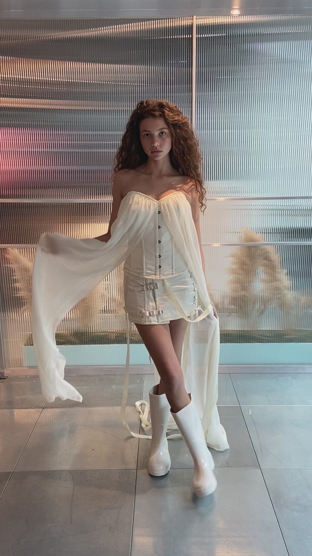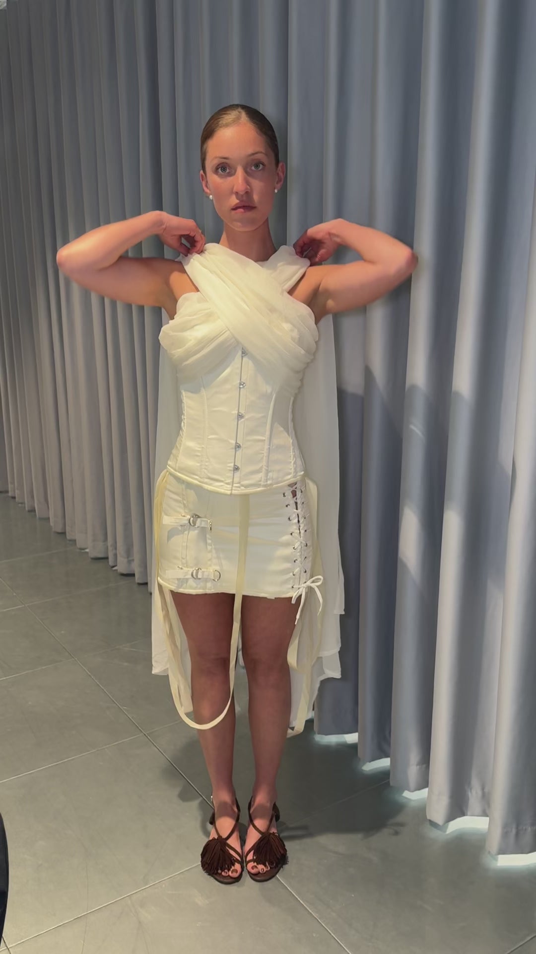 Silk Buckle Lace Up Mini-Skirt with Draped Ribbons
