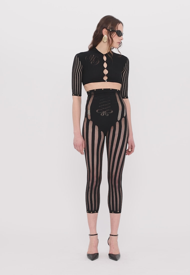 Striped Capri Leggings with Star Studs