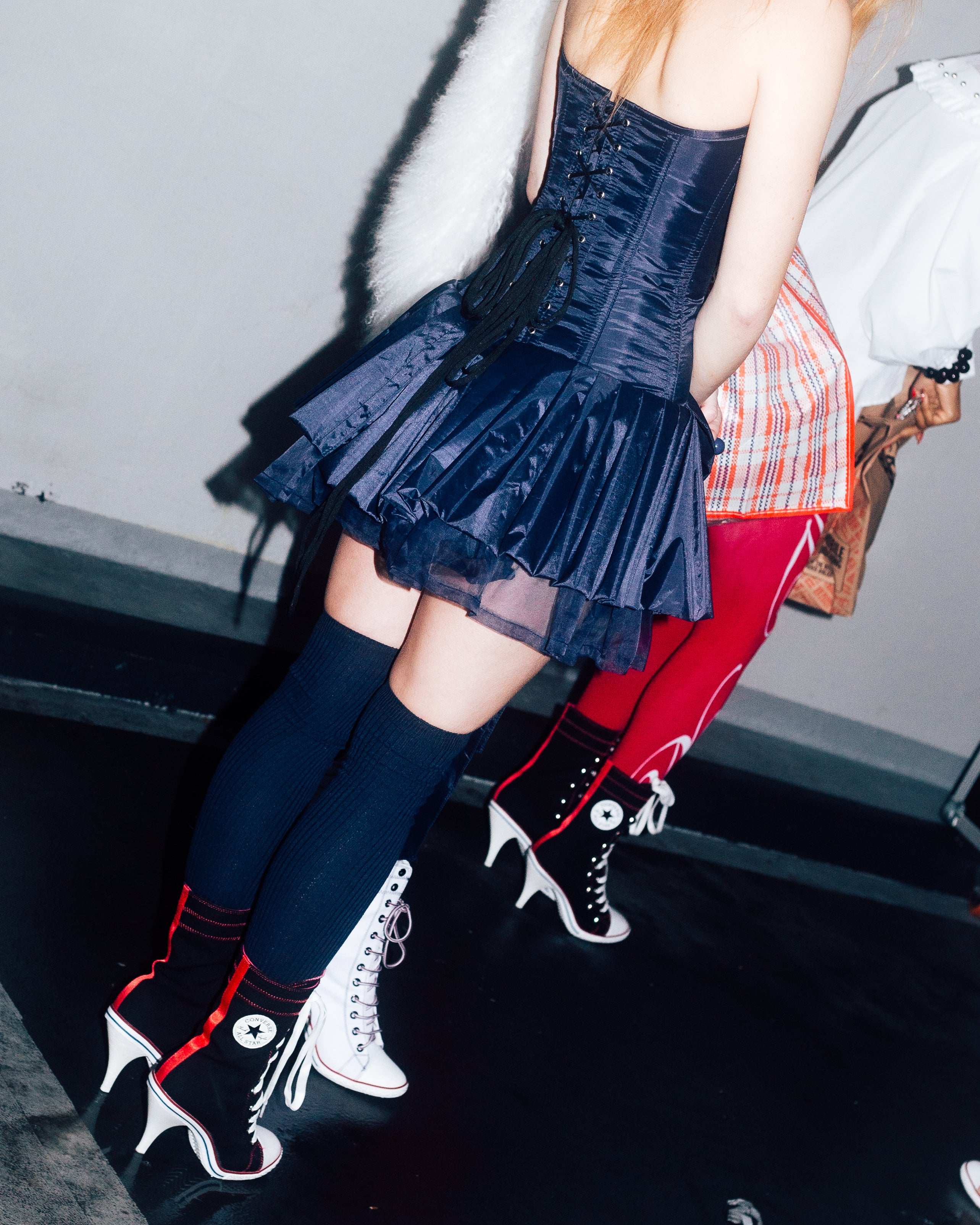 Taffeta Corset Bow front Dress with Cord-Up Back