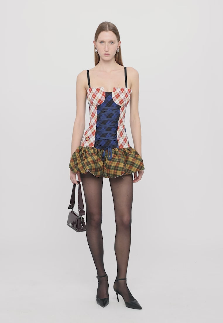 Tartan-Clash Scrunchie Bustier Dress