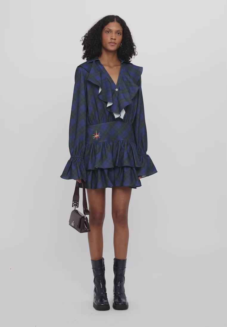 Tartan printed Ruffle mini-dress