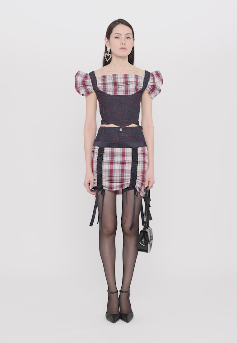 Tartan Ruched Adjustable Skirt Red in cotton plaid fabric